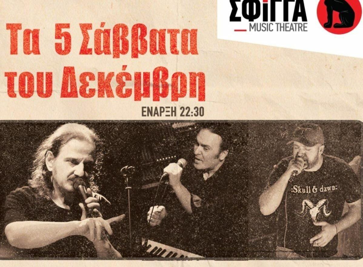 Τρεις γενιές τραγουδοποιών, ο Πάνος Κατσιμίχας, ο Κώστας Λειβαδάς και ο Δημήτρης Καρράς συναντιούνται στη μουσική σκηνή “Σφίγγα” για τα πέντε Σάββατα του Δεκεμβρίου και ενώνουν τις δυνάμεις και τα τραγούδια τους. Μαζί τους η Νατάσα Καμπαστάνα.