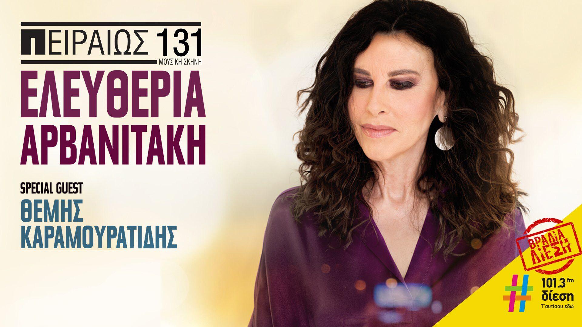 Στη σκηνή της Πειραιώς 131 η Ελευθερία Αρβανιτάκη θα παρουσιάσει, για πρώτη φορά ζωντανά, επί σκηνής, τα τραγούδια του νέου της άλμπουμ με καλεσμένο τον συνθέτη τους Θέμη Καραμουρατίδη.