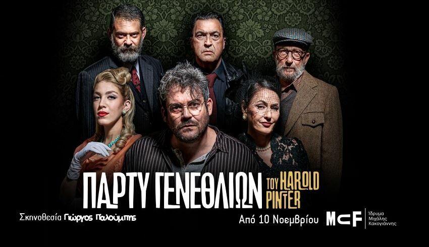 Το αριστούργημα του Χάρολντ Πίντερ Πάρτυ Γενεθλίων έρχεται τον Νοέμβριο στην Αίθουσα Θεάτρου του Ιδρύματος Μιχάλης Κακογιάννης, σε σκηνοθεσία Γιώργου Παλούμπη, με τους εξαιρετικούς ηθοποιούς Πυγμαλίωνα Δαδακαρίδη, Άλκηστη Ζιρώ, Φώτη Θωμαΐδη, Γιάννο Περλέγκα, Γιάννη Στεφόπουλο και Αθηνά Τσιλύρα.