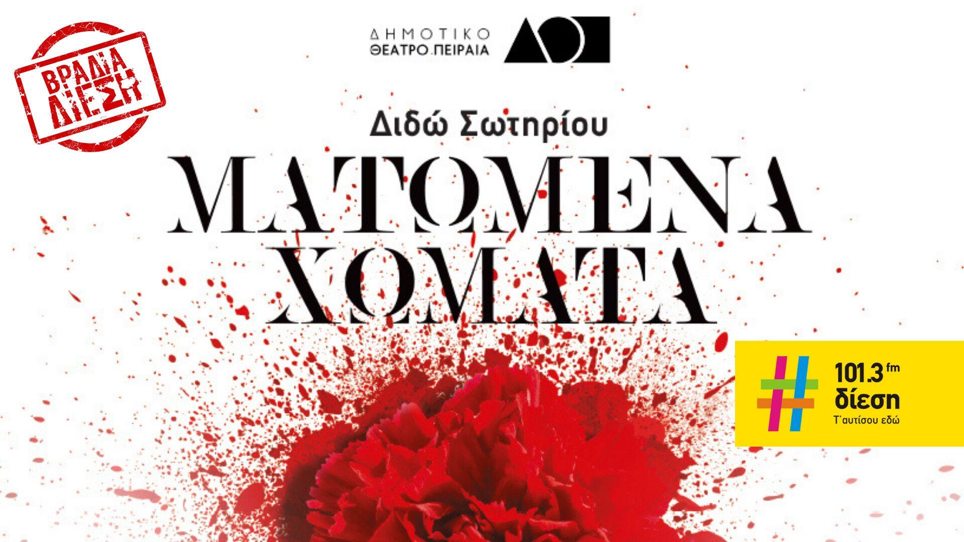 Ο Δίεση 101,3 παρουσιάζει το- πάντα επίκαιρο- έργο της Διδώς Σωτηρίου «Ματωμένα χώματα», σε μία Βραδιά για τους ακροατές, την Πέμπτη 5 Μαΐου, στις 21.00, στο Δημοτικό Θέατρο Πειραιά!