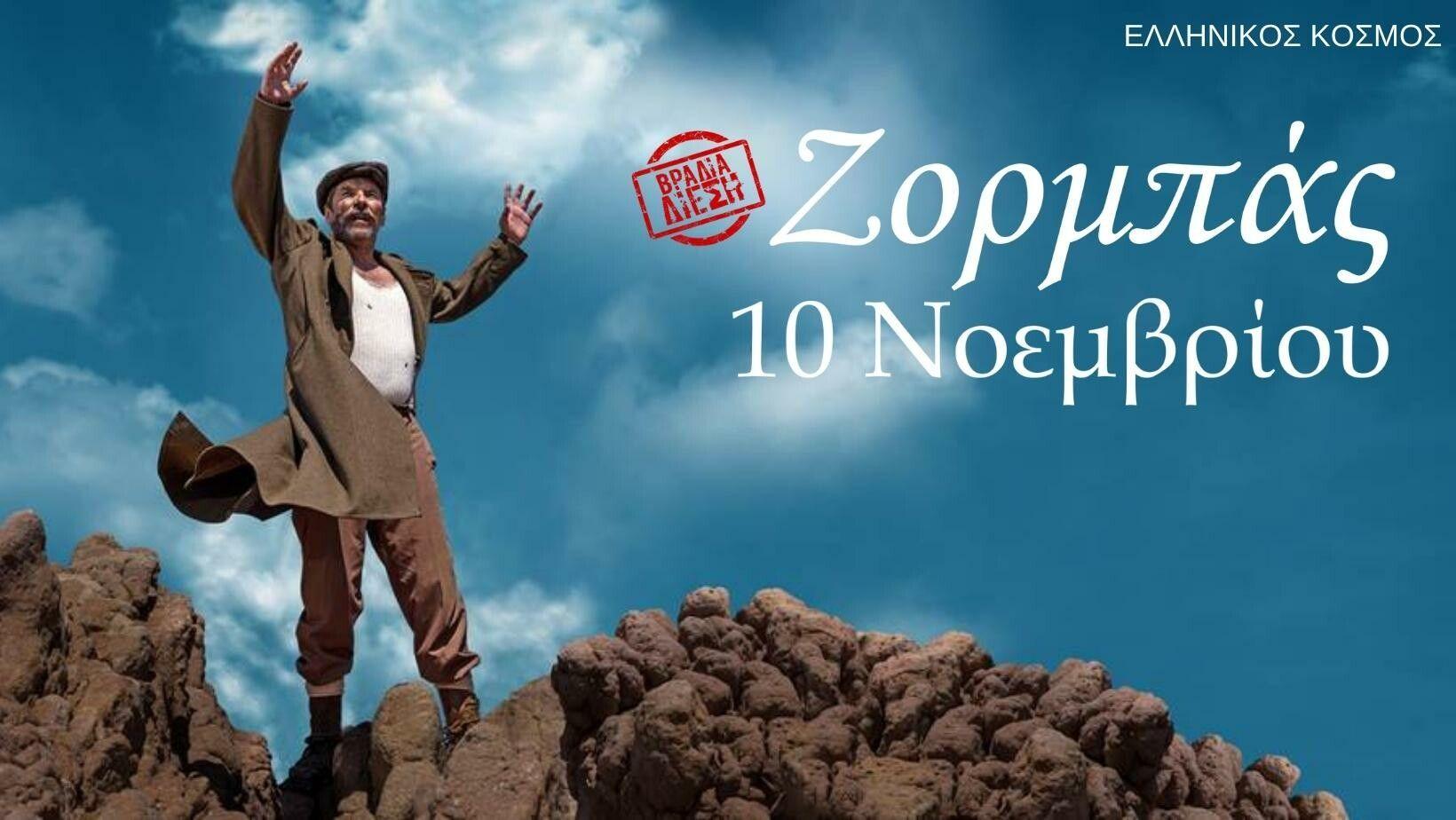 Ο ΔΙΕΣΗ 101,3 παρουσιάζει τον «Ζορμπά», το εμβληματικό έργο του Νίκου Καζαντζάκη, σε μία βραδιά για τους ακροατές του. Την Πέμπτη 10 Νοεμβρίου, στις 19:00, στον Ελληνικό Κόσμο ( Πειραιώς 254).