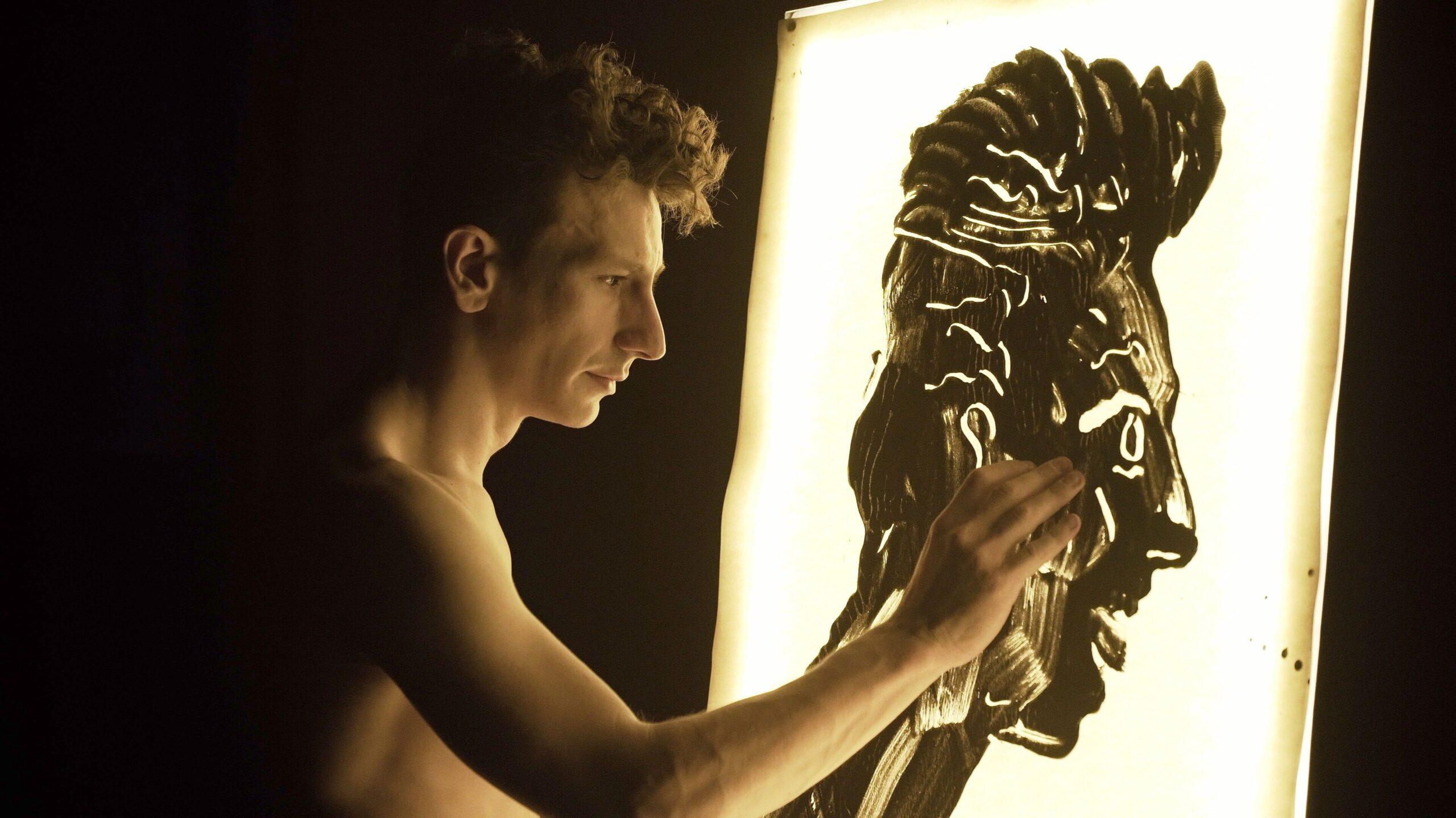 Ο Μιχάλης Σαράντης ερμηνεύει συγκλονιστικά και τους εννιά ρόλους της τραγωδίας, ενώ ο Απόστολος Χαντζαράς «συνομιλεί» μαζί του ζωγραφίζοντας, μπροστά στα μάτια των θεατών.