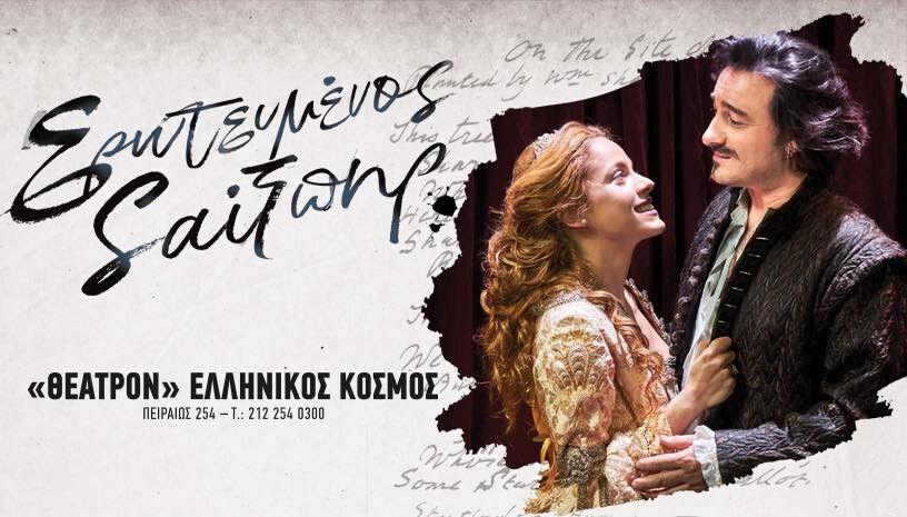 Η παράσταση «Ερωτευμένος Σαίξπηρ», η οποία βασίζεται στην οσκαρική ταινία του 1998 «Shakespeare in love», διασκευασμένη για το θέατρο με το αριστουργηματικό κείμενο του Lee Hall, παρουσιάζεται για πρώτη φορά στην Ελλάδα σε μία συμπαραγωγή του Ιδρύματος Μείζονος Ελληνισμού και της People Entertainment Group στο «ΘΕΑΤΡΟΝ» του Κέντρου Πολιτισμού «Ελληνικός Κόσμος» από τις 17 Οκτωβρίου 2018.